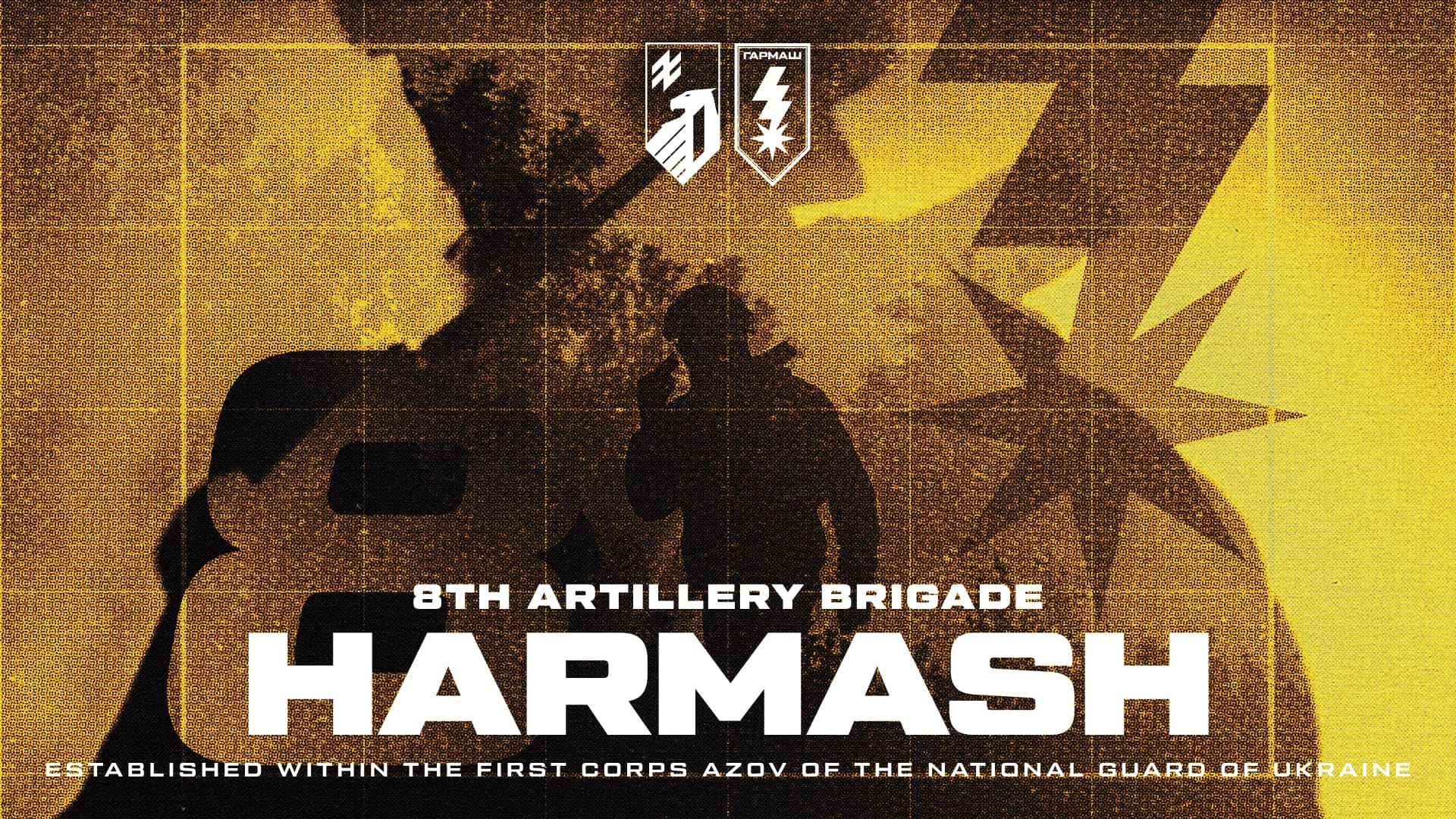 The shoulder patch of the 8th Brigade “Harmash” features a lightning bolt whose strike forms an eight-pointed star. The lightning strike symbolizes an explosion, a mark of accurate artillery fire that inflicts heavy losses on the enemy while covering the combat operations of the infantry.