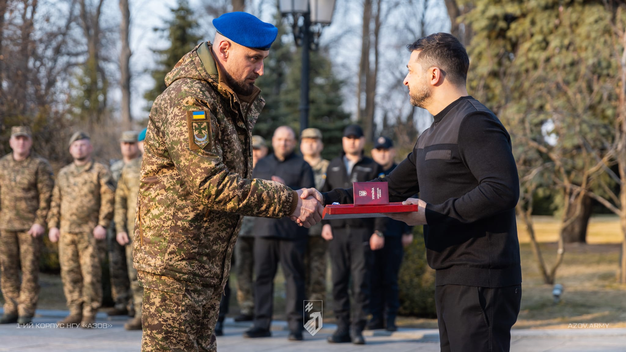 З нагоди 12-ї річниці створення Національної гвардії України відбулися урочисті заходи за участю Президента України Володимира Зеленського та вищого керівництва МВС і НГУ. Під час церемонії було відзначено 25 військовослужбовців НГУ, зокрема представників 1-ї БрОП «Буревій», 12-ї БрСпП «Азов» і 20-ї БрОП «Любарт», які входять до складу 1-го корпусу НГУ «Азов».