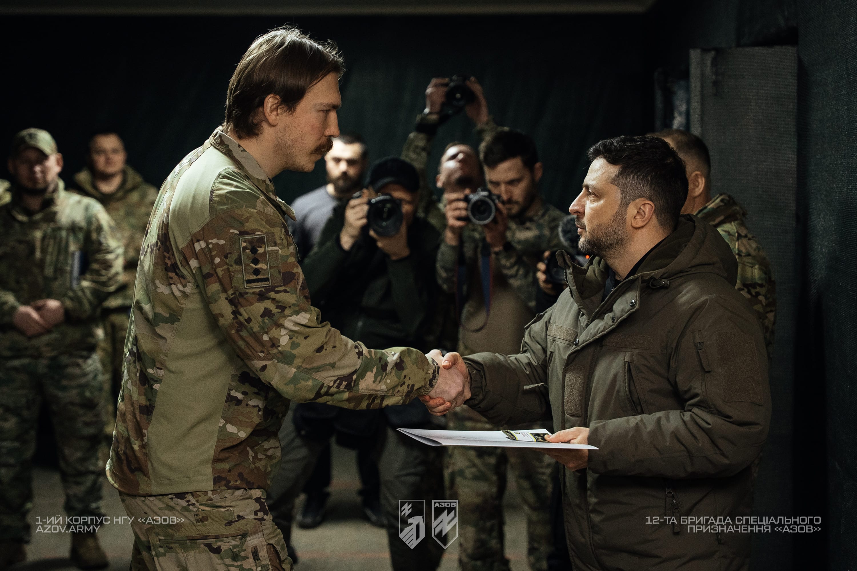 Володимир Зеленський відзначенив бійців та командирів корпусу державними нагородами. Також Президент особисто вручив погони бригадного генерала командиру 1-го корпусу НГУ «Азов», Денису «Редісу» Прокопенку.